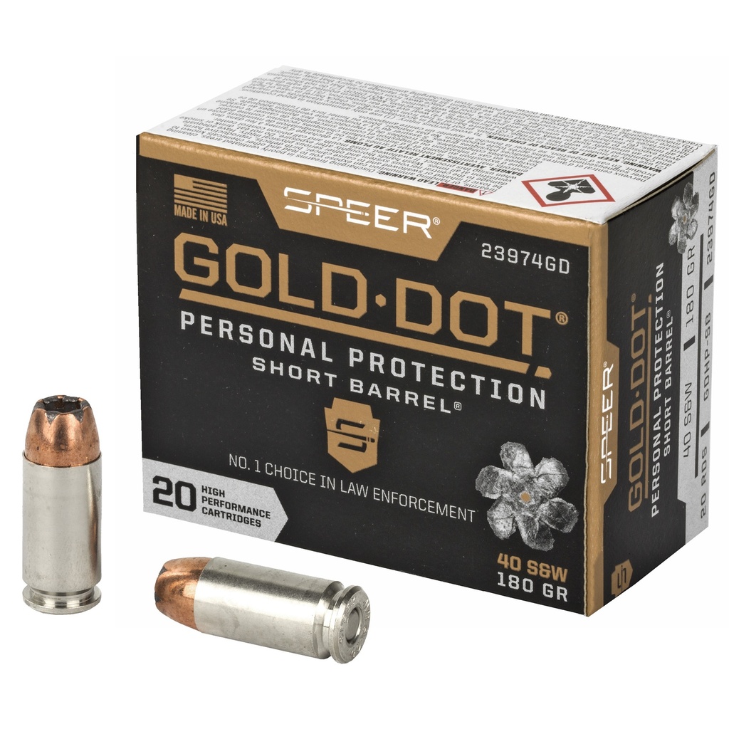 Speer Ammunition, Speer Gold Dot, Personal Protection, 40S&W, 180 Grain, Hollow Point, Short Barrel, 20 Round Box