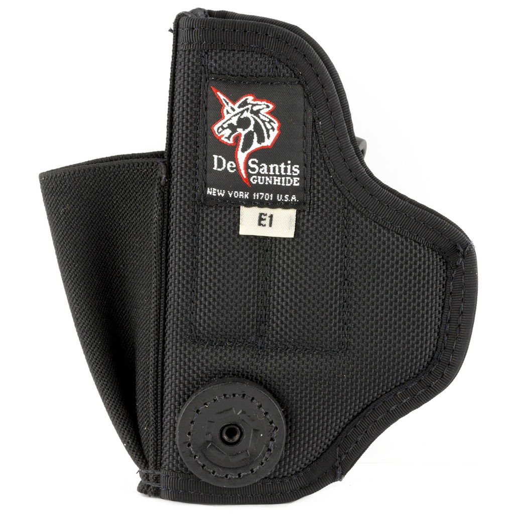 DeSantis Gunhide announces its latest addition in IWB nylon" the #M24 Tuck-This® 2. It is built from heavily padded 1050D black Ballistic nylon and lined with slick pack cloth. The widely adjustable belt tab can swing from cross draw to FBI-strong side carry. The tab allows the shirt to be tucked down in between the gun and trousers affording nearly total concealment. Auto-loader versions of the Tuck-This® 2 will have a magazine pouch built into the front holster spine. The M24 is currently made for most concealable hand guns in both right and left-hand versions. DeSantis made the original Tuck-able in the early seventies and cataloged it as the IA holster. Accommodates belts up to 1 3/4" wide. Available in black.
