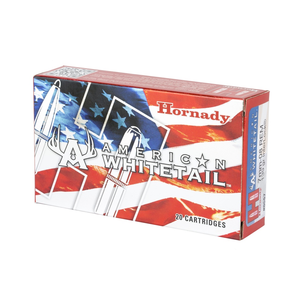 Hornady, American Whitetail, 7MM-08, 139 Grain, Soft Point, InterLock, 20 Round Box