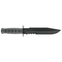 The 1.5" wide blade of this fighting/utility knife gives it extra strength for performing those heavy duty tasks. A partially serrated edge makes cutting looped and synthetic materials a breeze. Tang stamped USA. Leather/Cordura® sheath included.