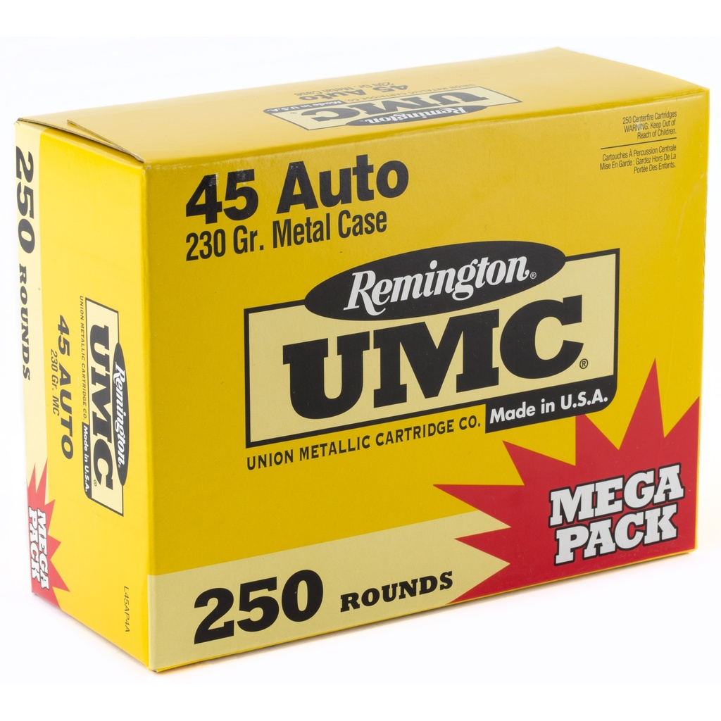 Remington, UMC, 45 ACP, 230 Grain, Full Metal Jacket, Mega Pack, 250 Rounds